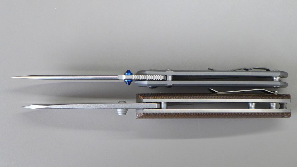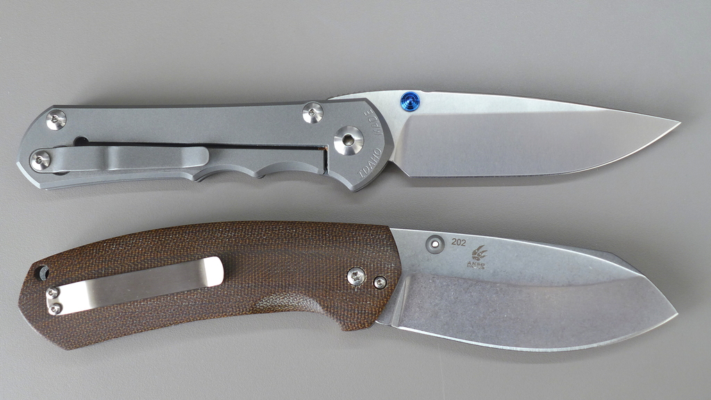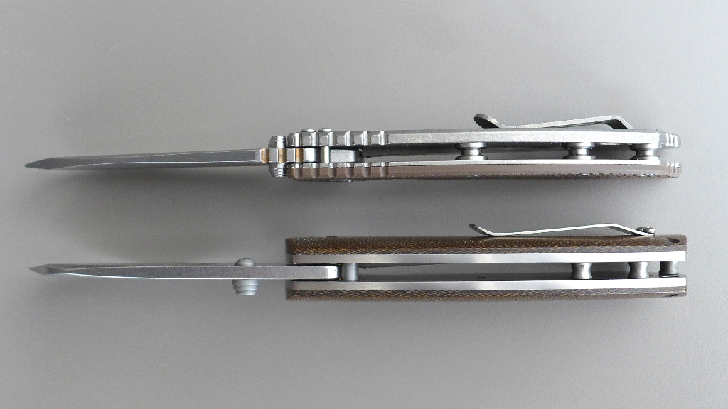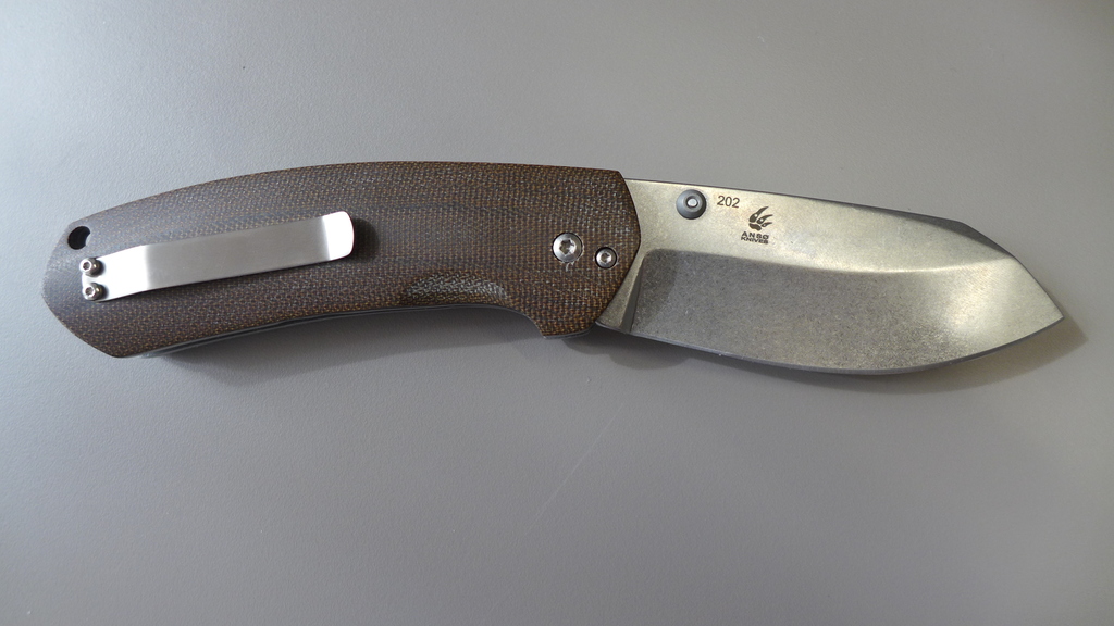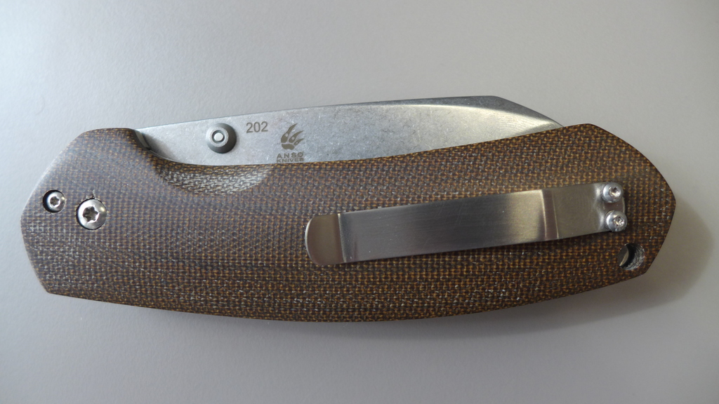 Les plaquettes de micarta sont très belles mais un peu glissantes à la réception du couteau. Cela s'arrange ensuite au fil du temps et de la manipulation. Le clip en position tip-up est trop classique mais il est efficace et les gauchers peuvent le repositionner de l'autre côté du manche.