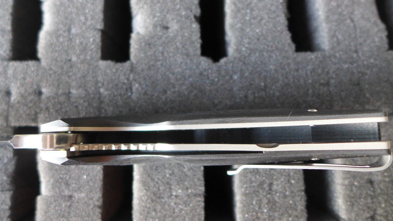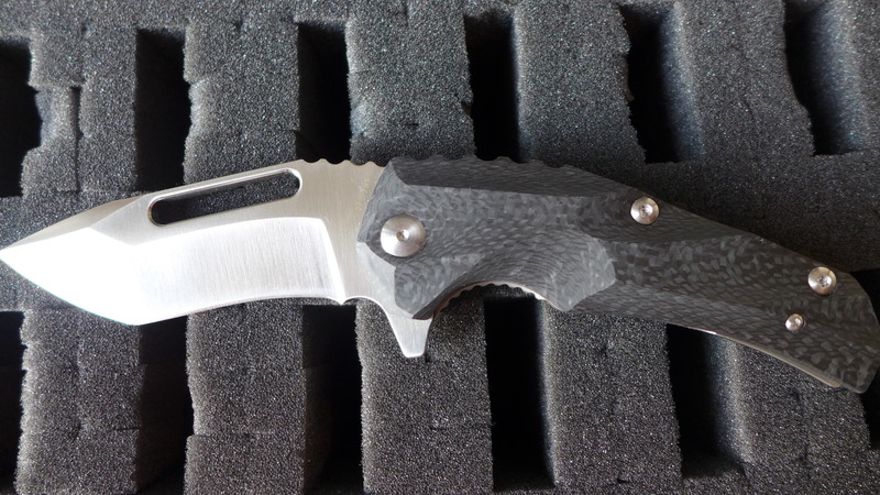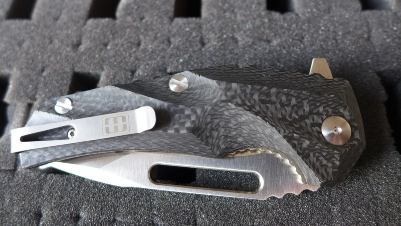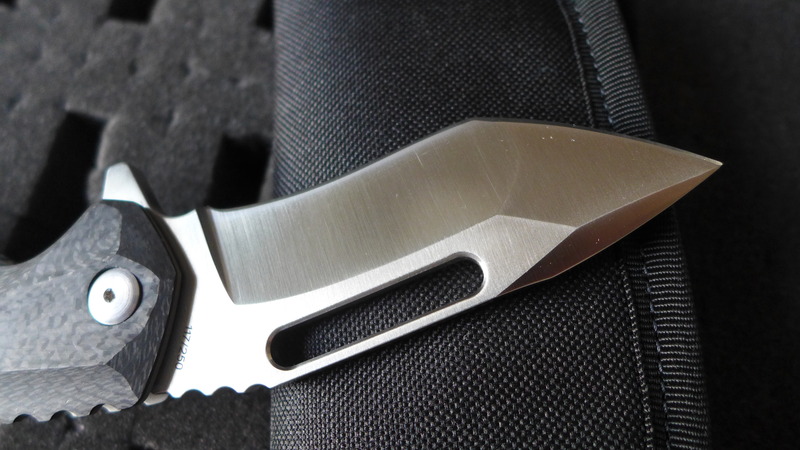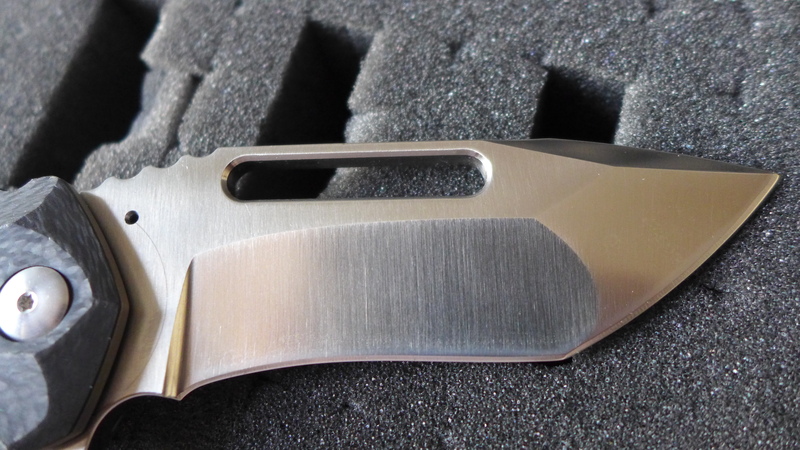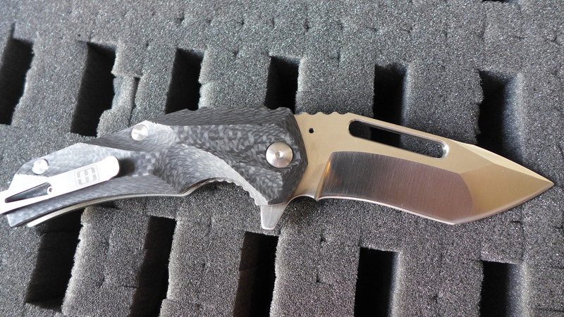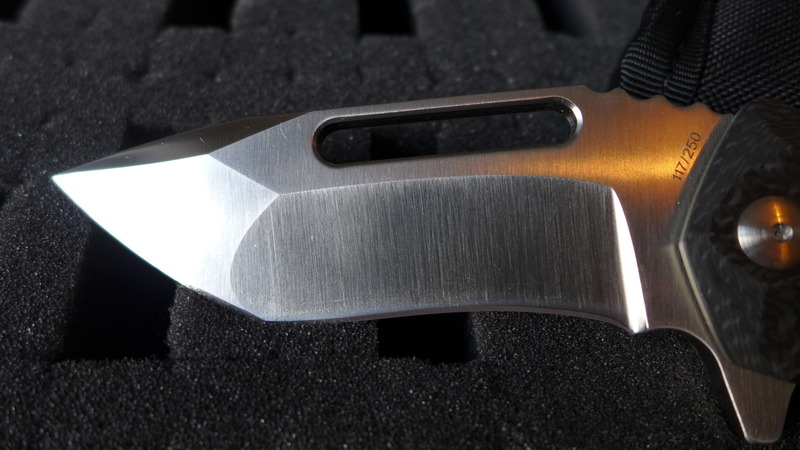 Le manche est en G10 noir (500 exemplaires) ou bien en fibre de carbone (250 exemplaires).