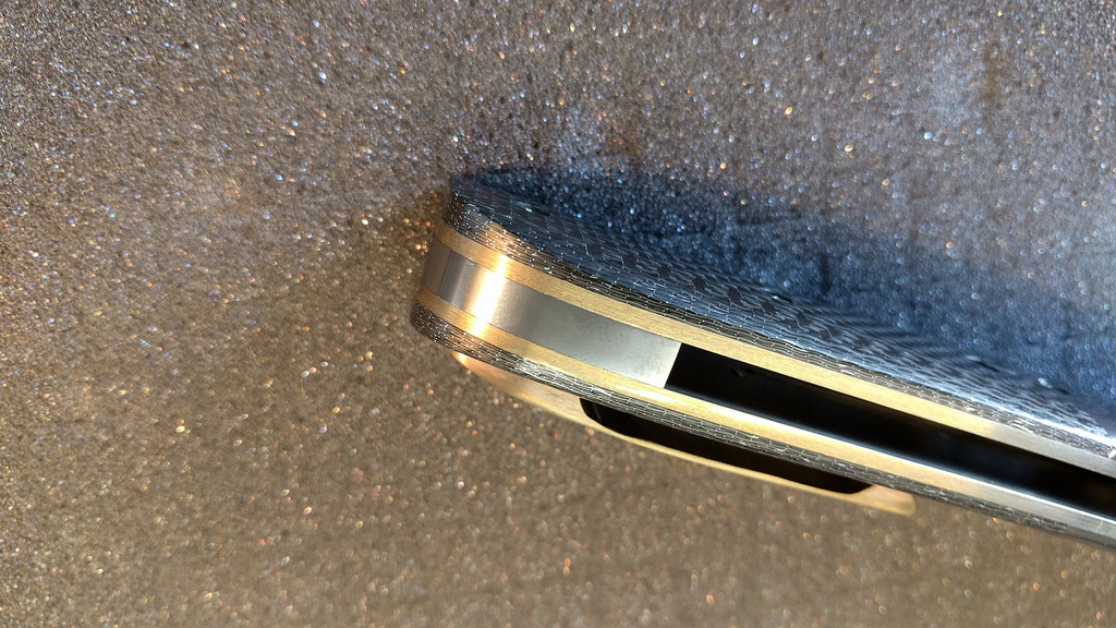 La finition satin est superbe avec les lignes verticales du grind qui contrastent avec la finition tiré-en-long du plat.