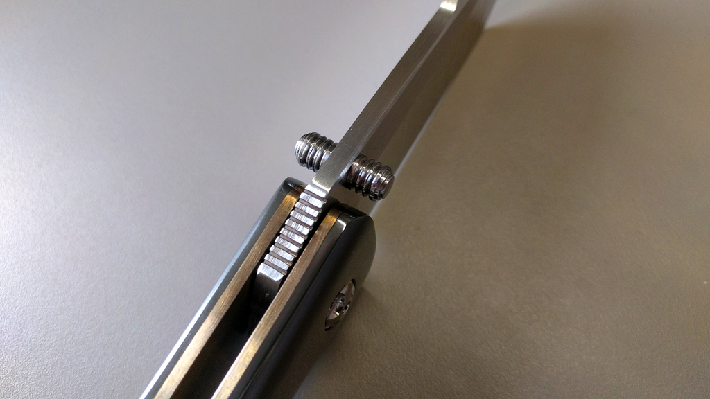 David utilise un système de roulement à billes pour le pivot et l'action au déploiement est particulièrement onctueuse. La bille de rétention est parfaitement ajustée et la lame ne sort pas de son logement même en secouant le couteau (ce qui n'est pas si fréquent sur un liner-lock).