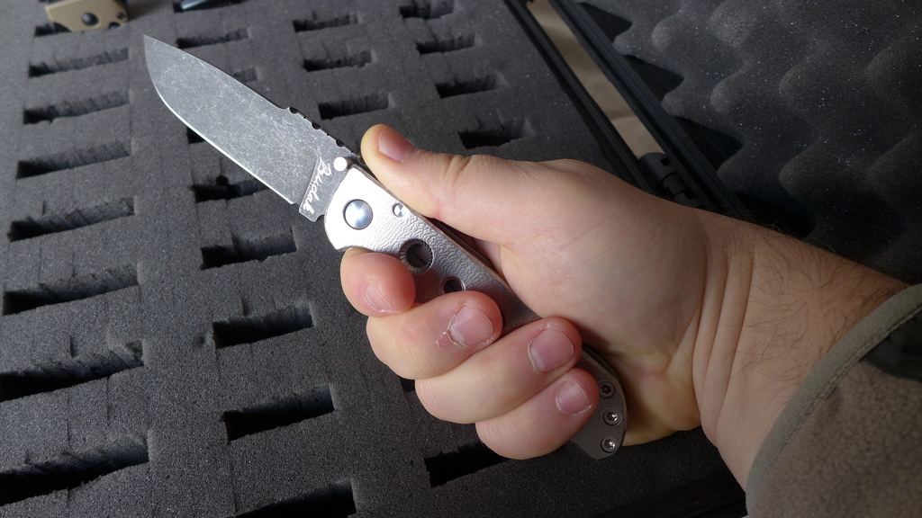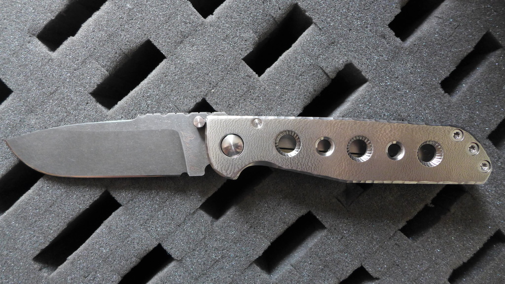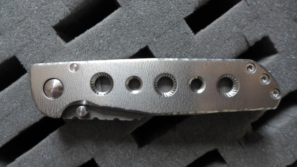 Il s’agit d’un framelock avec manche en titane mesurant 21,5 cm déployé (12,5 cm fermé).