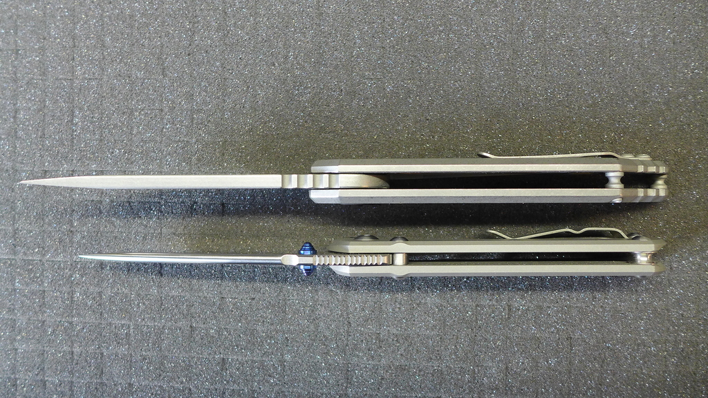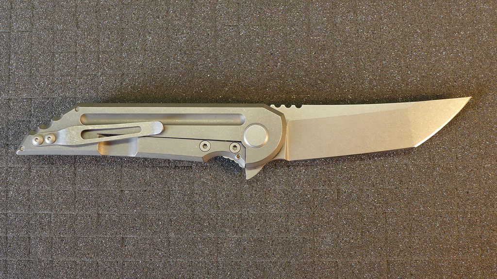 Il s'agit d'un flipper framelock d'une taille respectable puisque le couteau mesure 23 cm en position ouverte et 13,7 cm quand il est fermé. La lame fait 95 mm de la pointe au début du manche.