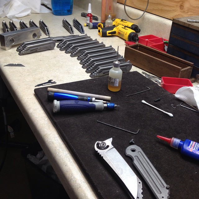 Il a ainsi travaillé avec une petite entreprise (une "machine shop" comme disent les américains) afin de faire découper et usiner selon ses spécifications exactes les éléments du couteau. Il se charge ensuite des ajustements et de l’assemblage afin d’obtenir un niveau de qualité très proche de ses customs.