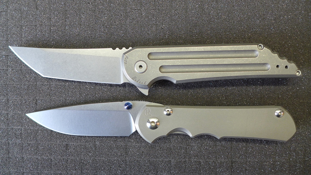 Si on le compare au Large Sebenza 25 on voit que le Kwaiback est un peu plus grand mais surtout franchement plus épais. On peut surtout se rendre compte de la ligne très remontante de la lame :