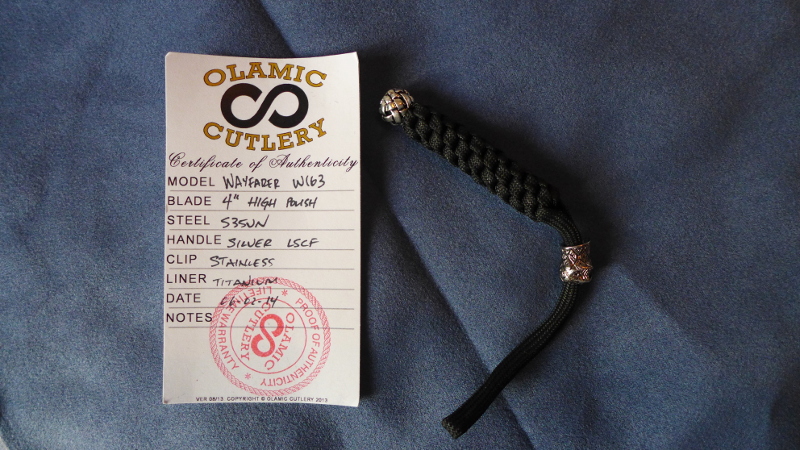 Outre l'outil spécifique déjà cité, le Wayfarer est livré avec un certificat d'authenticité ainsi qu'une lanière avec beads qui (pour les amateurs) trouvera sa place dans la découpe de forme triangulaire en arrière du manche.
